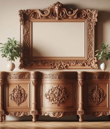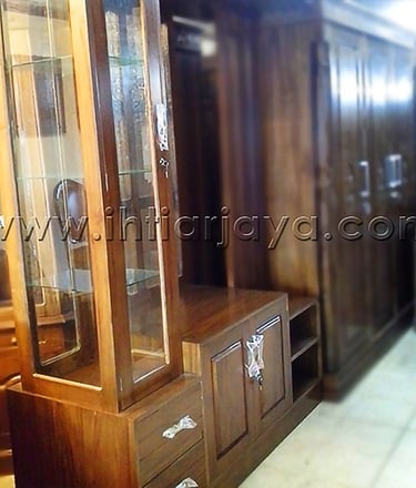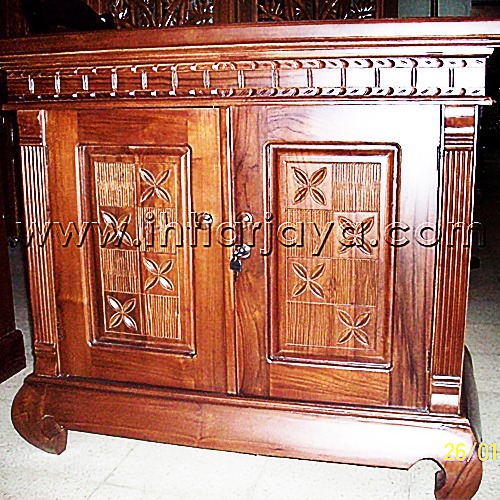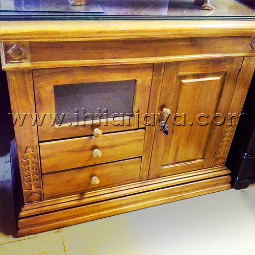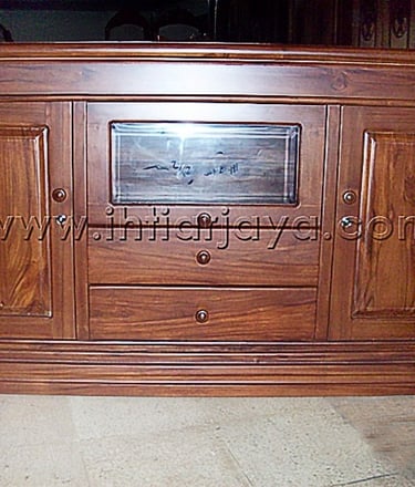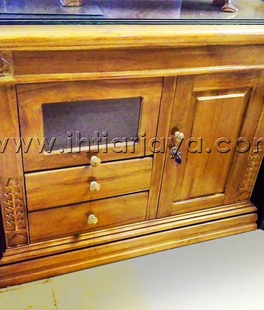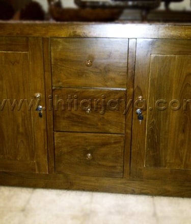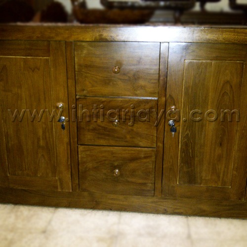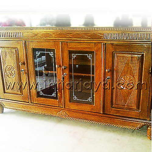 Bufet Kayu Jati 3 pintu dengan ukiran.